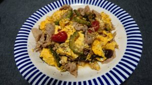 ゴーヤチャンプルって鰹出汁をきかせた豚肉と卵と野菜(もちろんゴーヤ込み)の炒め物。